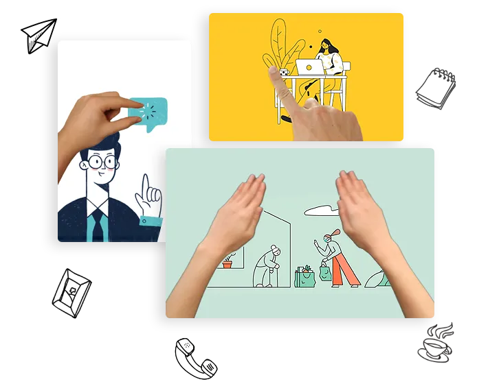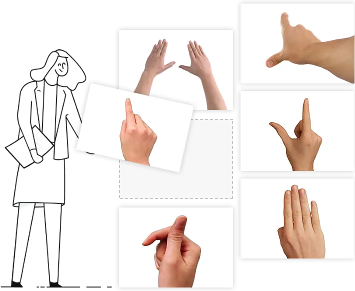- Equipped with tens of different male or female hands, along with various sizes and gestures, allowing for a personalized touch in doodle videos.