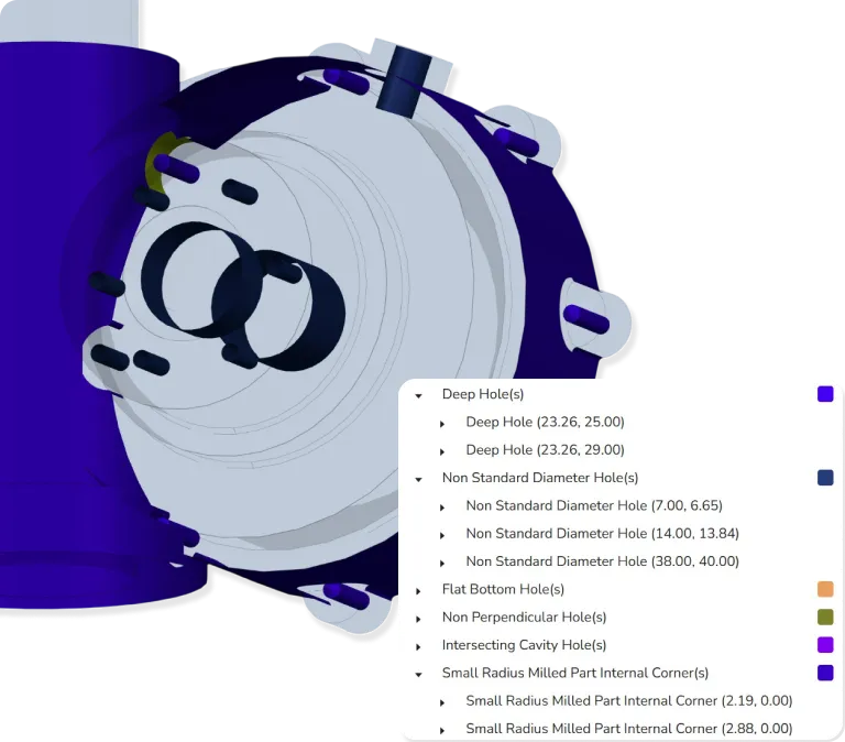 - Provides exact NURBS and analytic CAD data (B-Rep), along with robust feature detection to recognize holes, pockets, and bends.