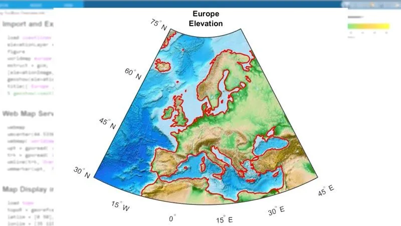 Mapping Toolbox supports a complete workflow for managing geographic data. You can import vector and raster data from a wide range of file formats and web map servers. The toolbox lets you process and customize data using trimming, interpolation, resampling, coordinate transformations, and other techniques. Data can be combined with base map layers from multiple sources in a single map display. You can export data in file formats such as shapefile, GeoTIFF, and KML.