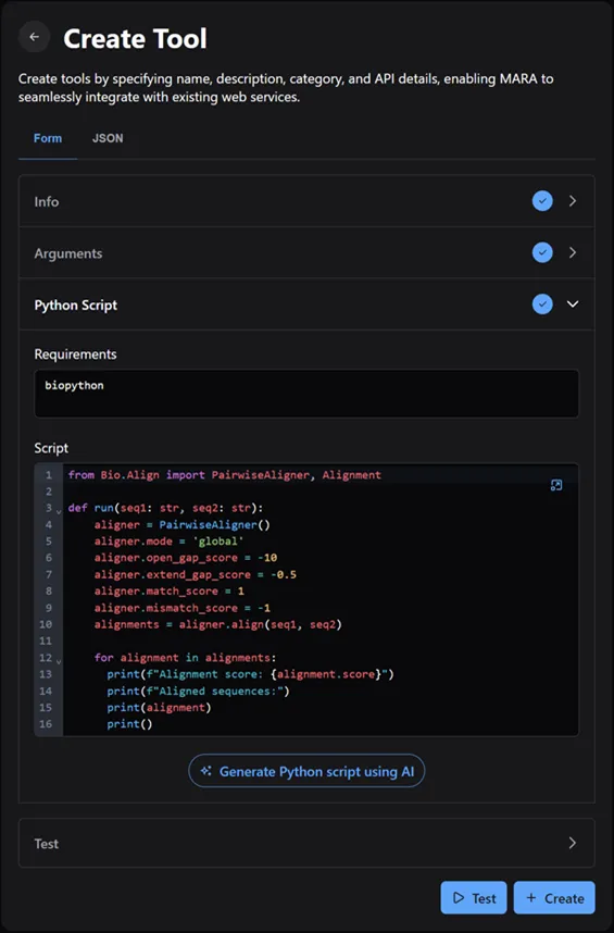 - Provides scientists with clear visibility into tool usage, input, and output, actively mitigating AI hallucinations.