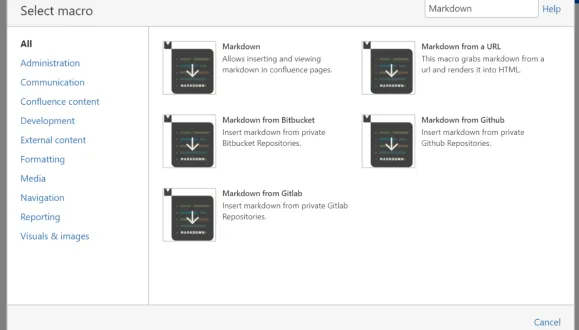 Instantly render markdown including table, text, and HTML formatting in Confluence pages. Import from Bitbucket, Github and Gitlab.