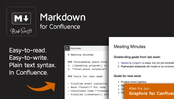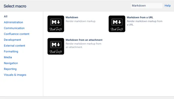 - Includes 3 flexible macros that render Markdown content in Confluence: