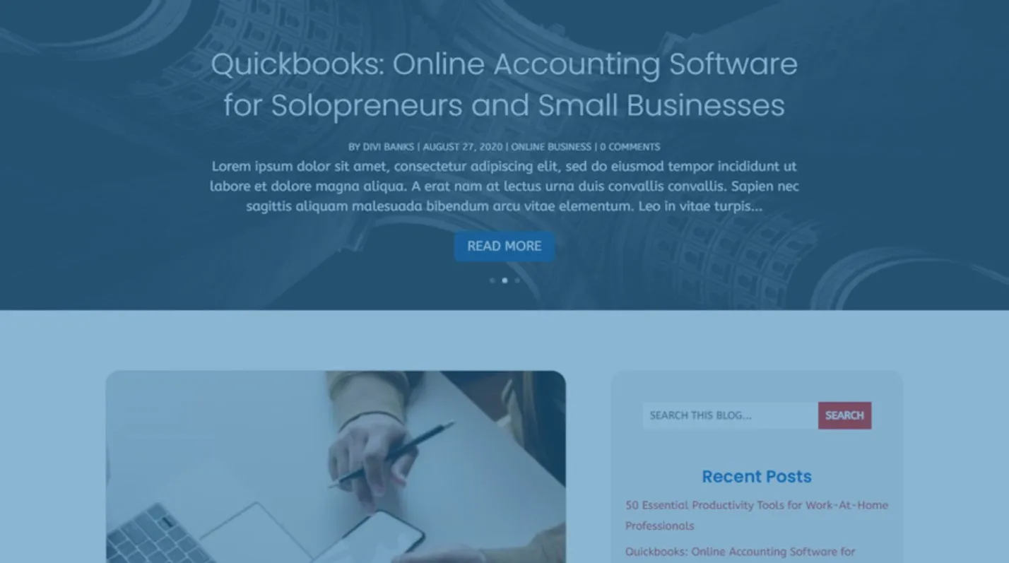 This Divi layout was built by a blogger, considering all the interests of affiliate marketing bloggers. It’s more than just layout for a blog page. This layout can be used on almost every website or blog. It showcases the most popular categories and has a custom sidebar with everything you’d want to display on a sidebar. Including that one featured affiliate product, you are currently promoting. If you are looking to save time coming up with a proper design for your blog posts’ page, Marketer Blog Layout will help you with that.