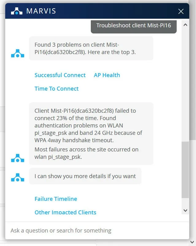 AI-Driven Network Optimization Marvis leverages Mist AI to proactively identify and resolve network issues across multiple domains.