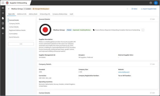 - Self-Service Portal: Provides suppliers with a dedicated self-service portal to upload and maintain their company details. This feature simplifies the onboarding process and ensures that supplier data is always up-to-date.