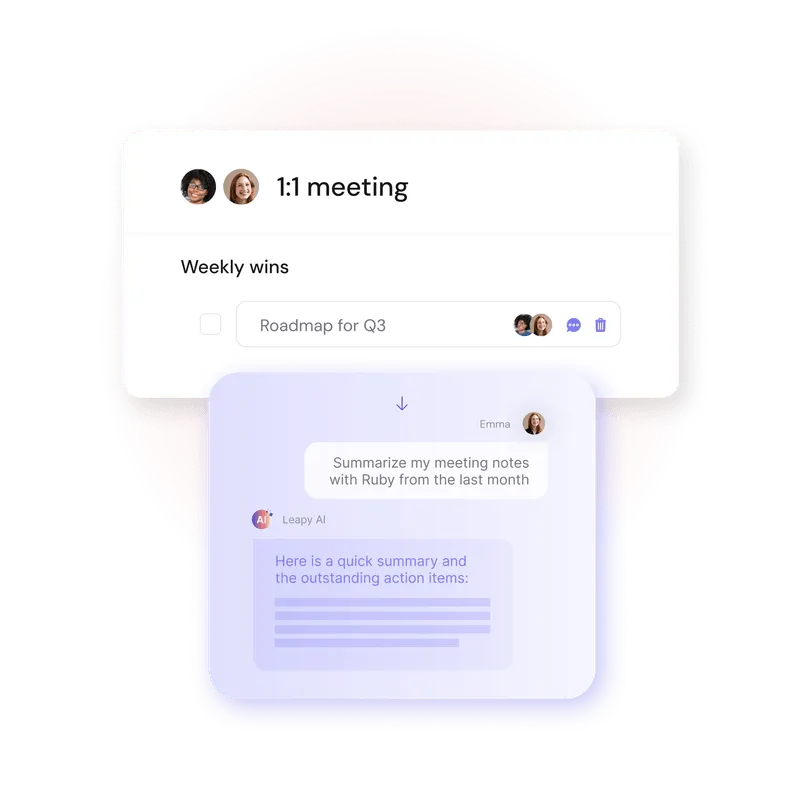 - Integrations & Formats: Works with Google Calendar, Outlook, Slack and Teams and supports multiple meeting formats including 1:1s and all-hands.