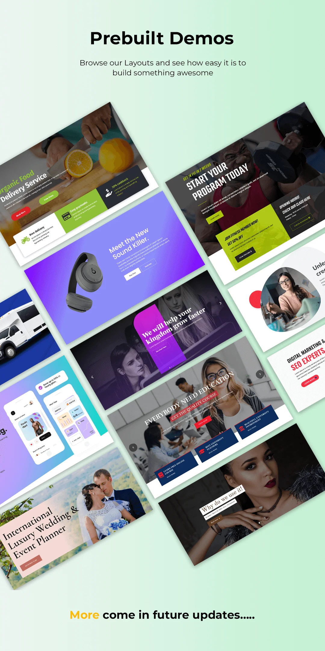 - Sleek and Modern Design: Each layout is meticulously crafted to provide a sleek, modern look that aligns with the latest web design trends. Perfect for any industry, from tech startups to creative agencies.