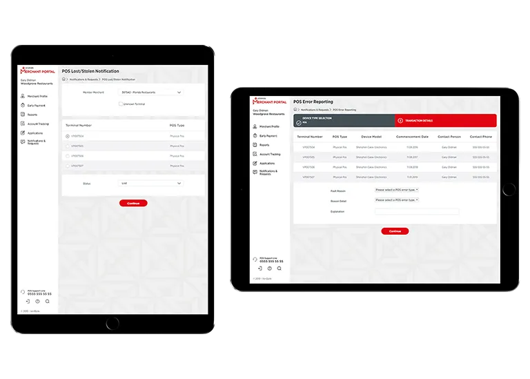 - Simple one-button access to key support actions: Requests on POS material purchasing and statements, access permissions, end-of-day configuration, transaction cancellation and refunds
