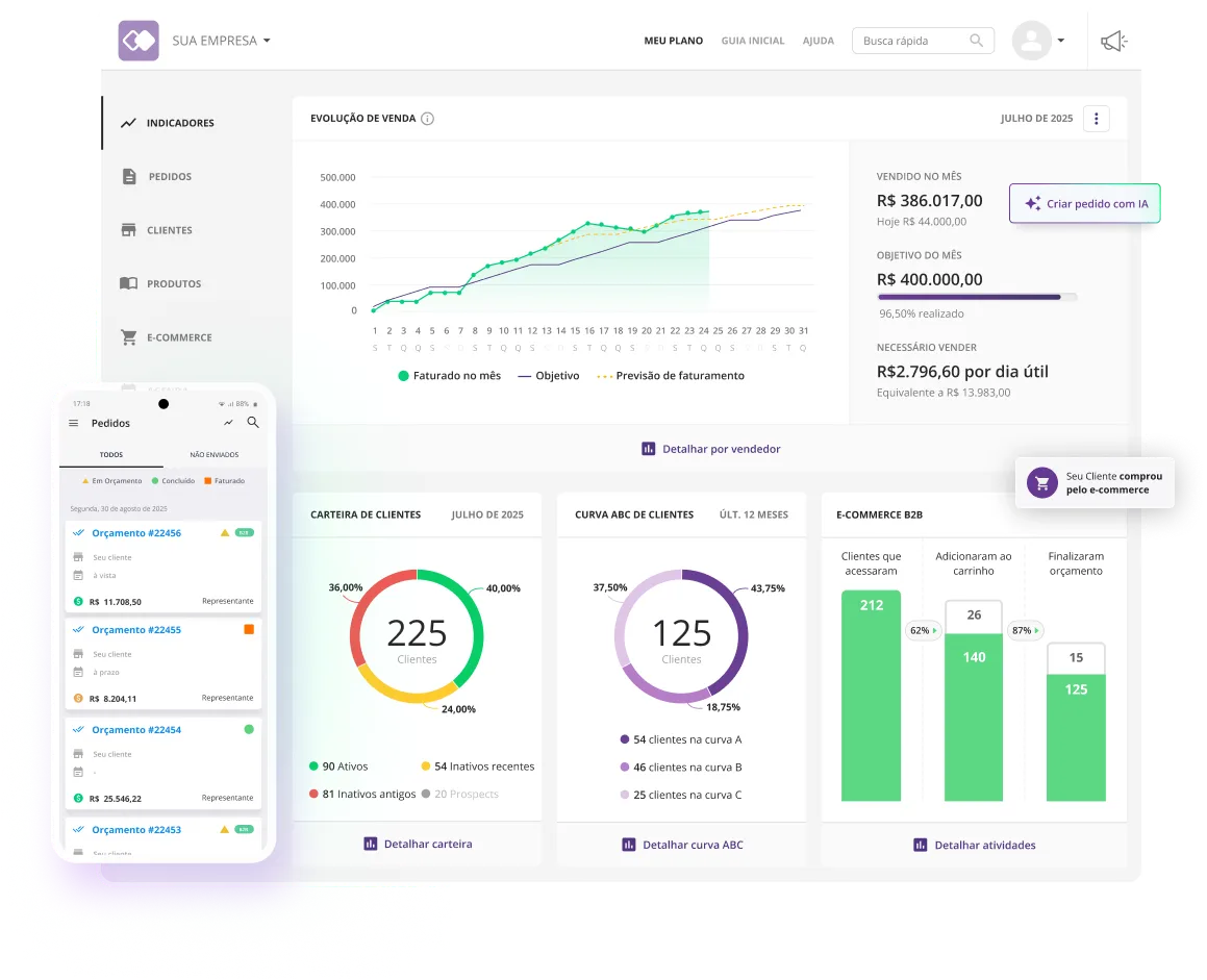 Mercos is a leading B2B e-commerce and sales management platform designed for industries, distributors, and commercial representatives. It integrates artificial intelligence, order automation, CRM, ERP connectivity, and a robust online store system to streamline and enhance commercial operations.