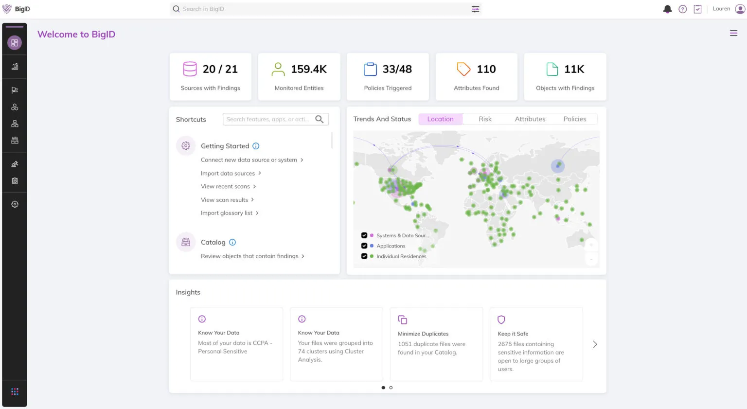 - Identifies sensitive data across the organization