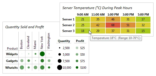 Other included controls are box plots, bullet graphs, candlestick charts, heat maps, segment charts, and trend indicators. Basically everything you need to create enhanced compact data displays.