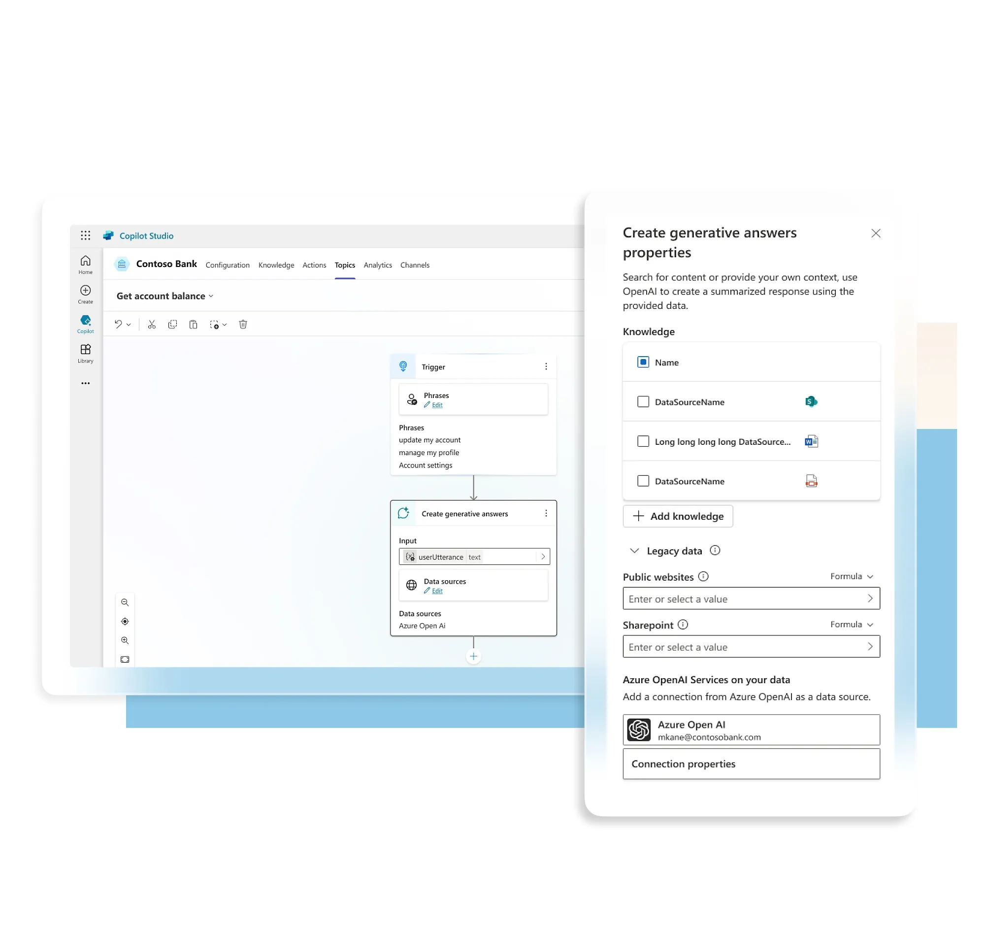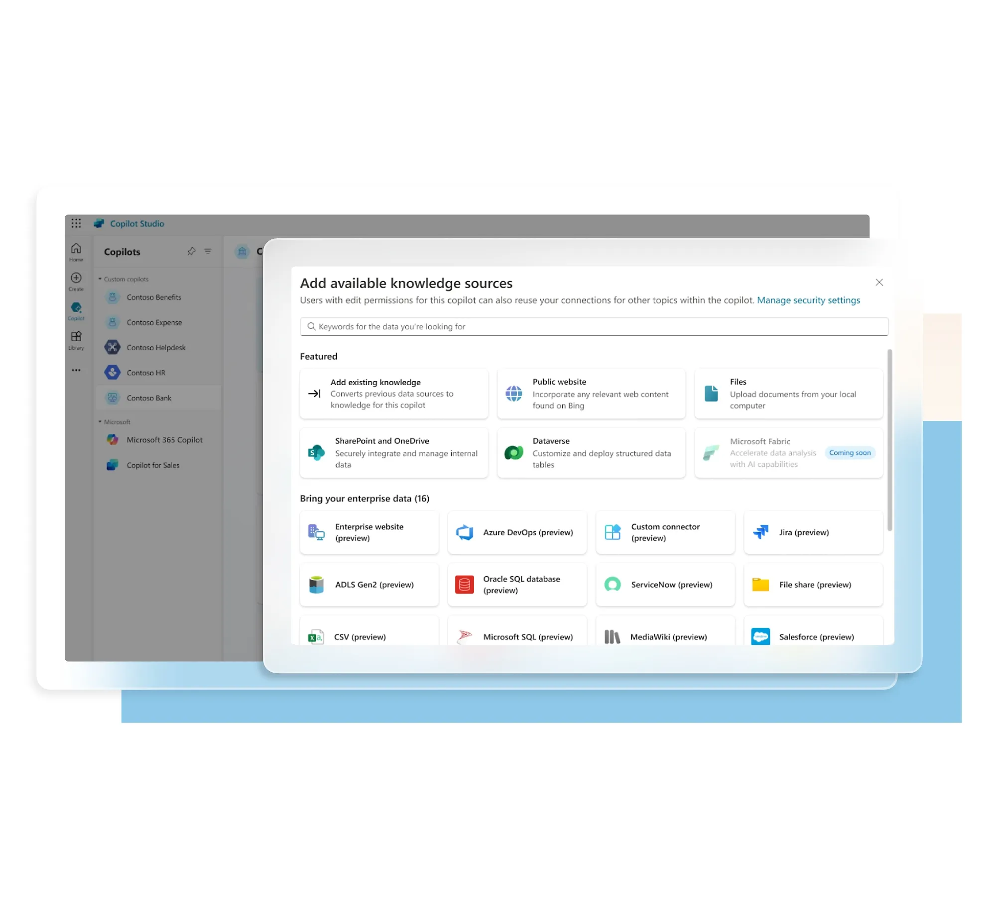 Build your own agents or enhance Microsoft 365 Copilot with one.