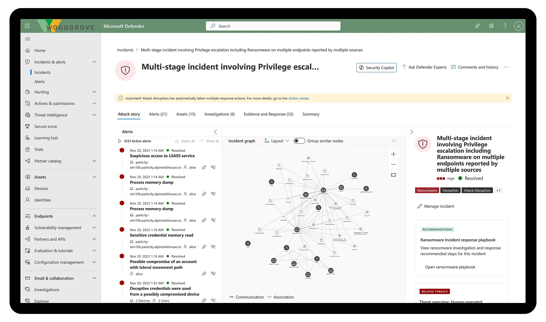 - **Move at machine speed with Microsoft Security Copilot: **Use built-in, security-specific generative AI to rapidly investigate and respond to incidents, prioritize alerts, and learn new skills. Copilot is now embedded in Defender XDR for Copilot customers.
