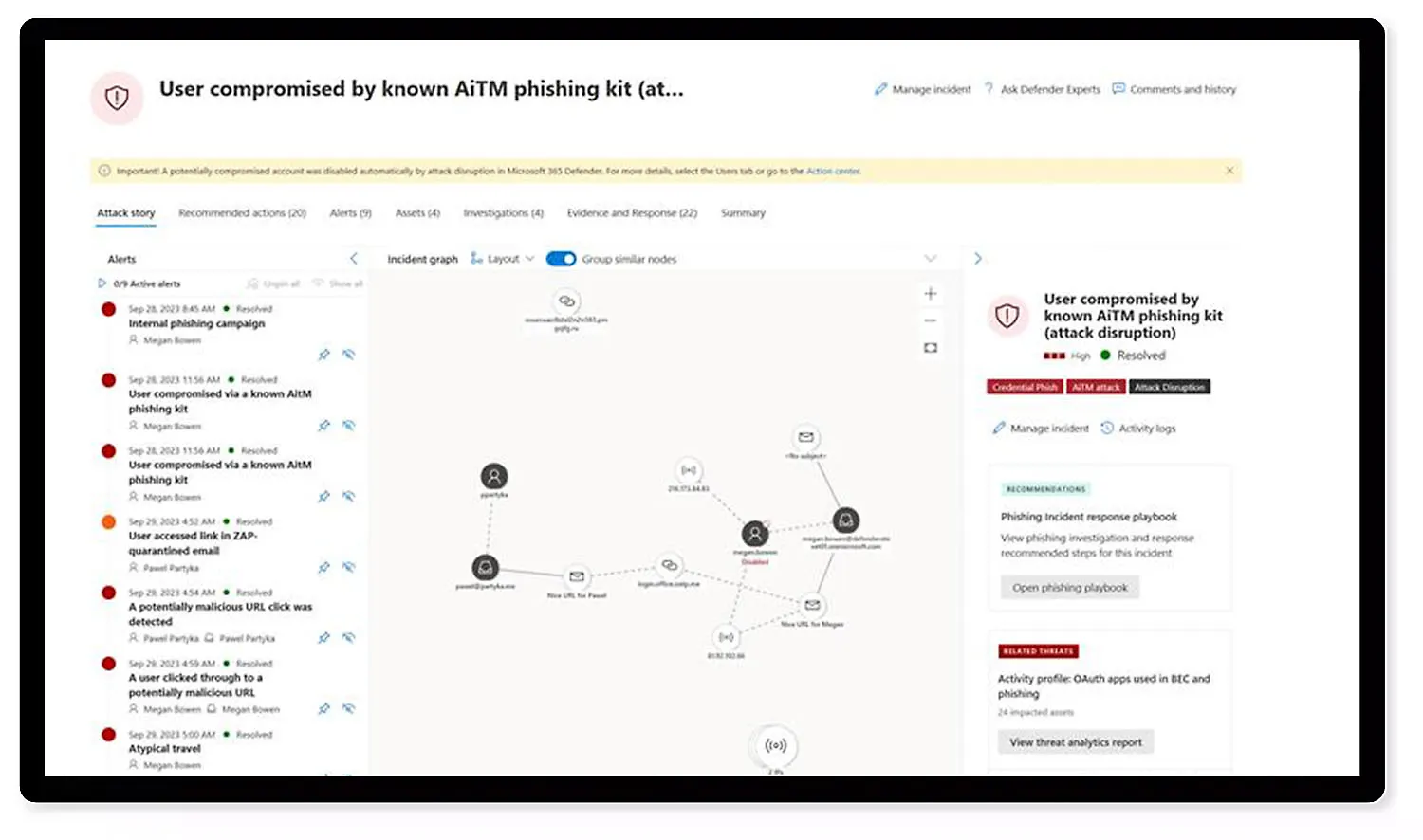 - **Incident-level visibility: **Correlate identity alerts with signals from across Microsoft Defender XDR for true incident-level visibility.