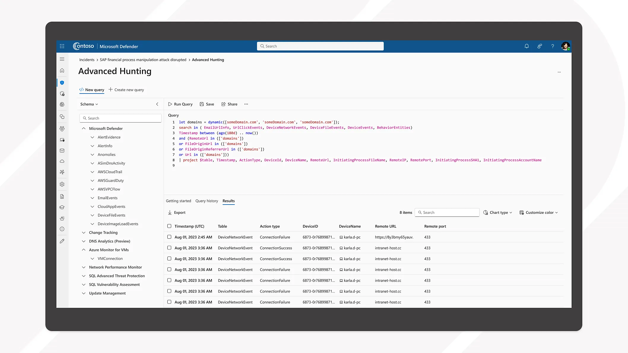 - **Auto-heal affected assets: **Reduce your workload with automated self-healing of menial tasks, such as device cleanup. Build your own automated response to recurring alerts in your environment using custom detection combined with Kusto Query Language (KQL) queries.