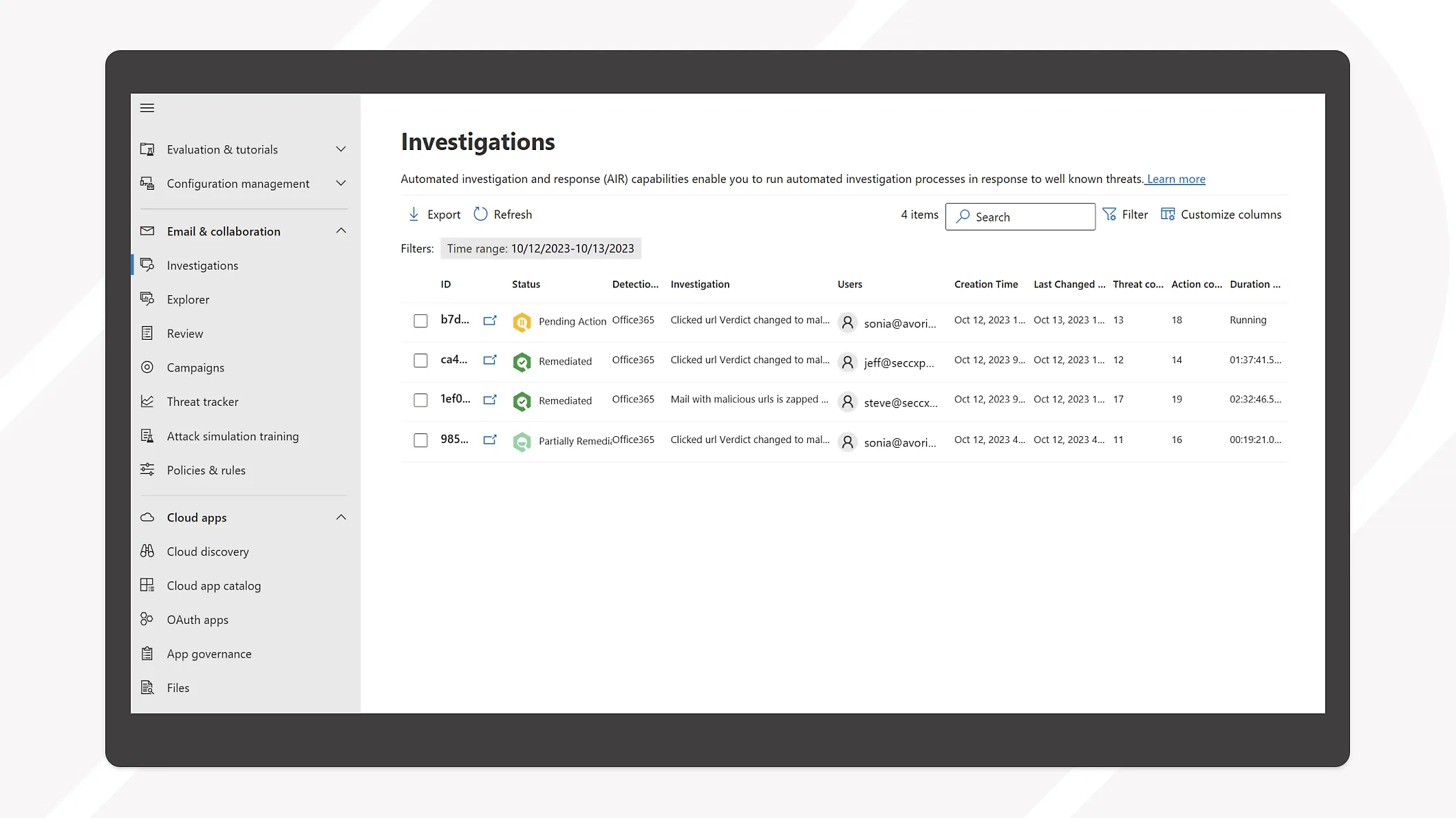 - **Email and collaboration tools: **Protect your email and collaboration tools from advanced cyberthreats, such as phishing and business email compromise.