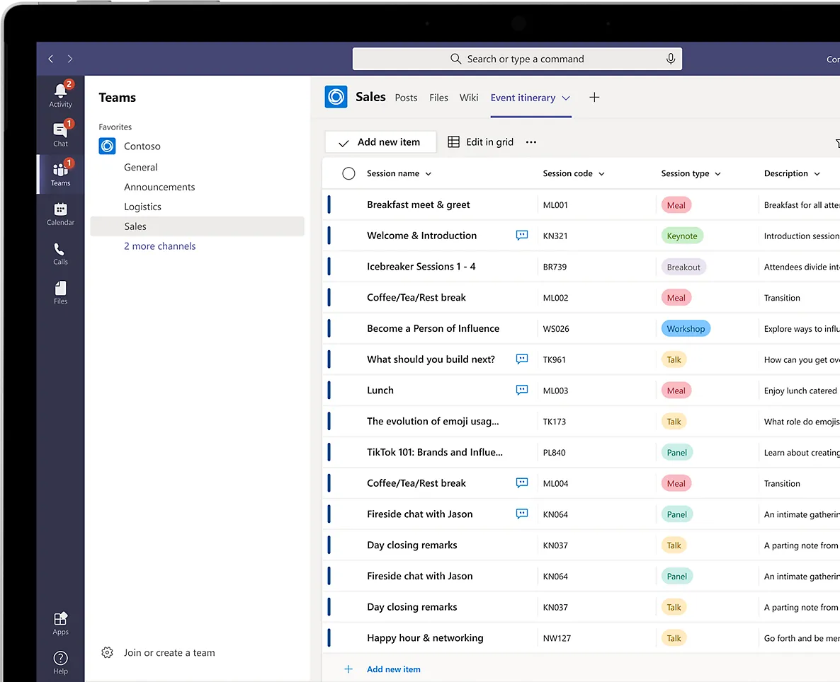 - **Keep everyone in sync with lists in Microsoft Teams: **Work together in real time with conversation and lists side by side. Track what matters most to your team using rules, reminders, and comments.