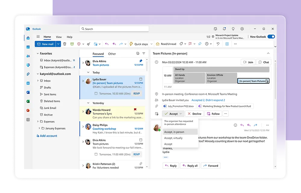 - **Coordinate: **Know where to work to achieve the right outcomes. Align and manage schedules to take advantage of valuable in-person collaboration.
