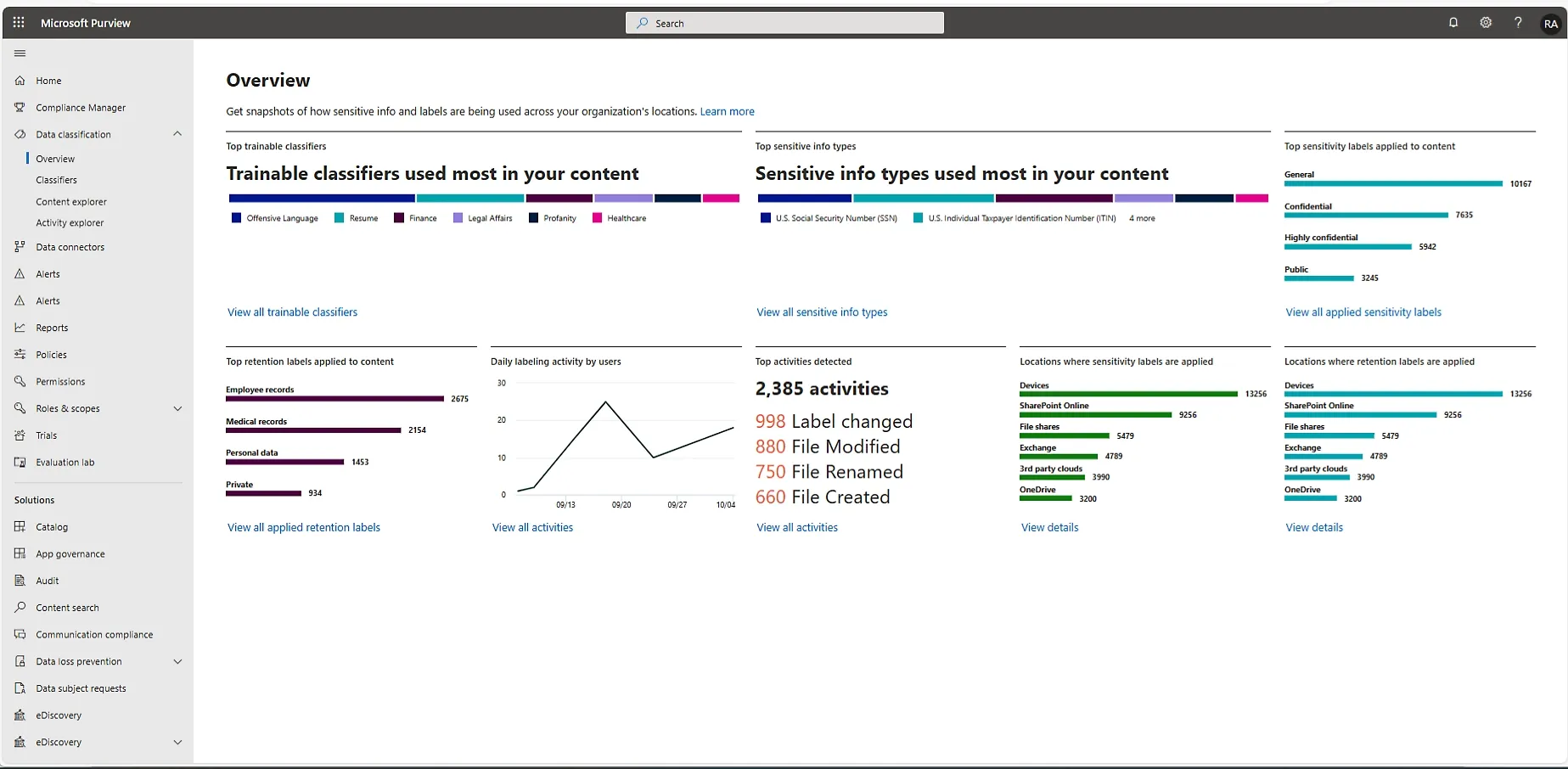 - **Content explorer: **Gain a better understanding of user activities related to your sensitive data and how that data is being used.