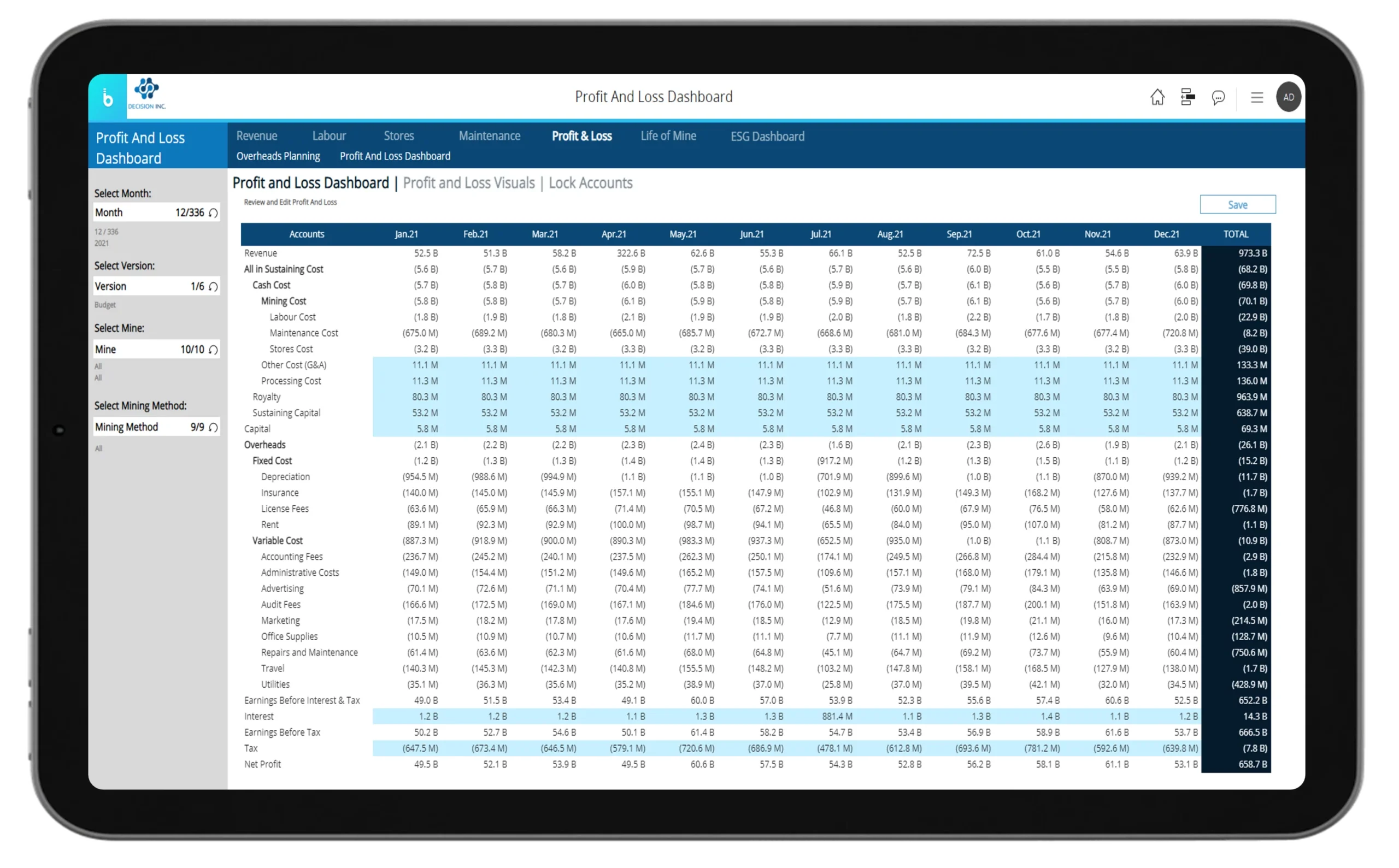 - Unified Enterprise Application: Integrates finance, production, bill of materials, labor headcount, maintenance costs, and capital expenditures.