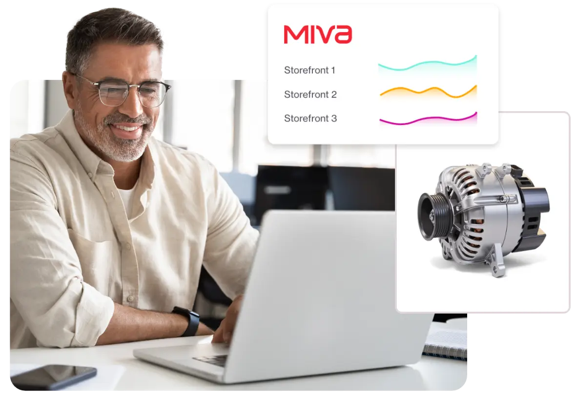 Miva MultiStorefront lets merchants create and operate multiple distinct storefronts from a single Miva admin — enabling separate branding, domains, currencies, catalogs, and market-specific experiences while centralizing inventory, orders, and administrative workflows. The solution is built to scale B2B and B2C operations, reduce operational complexity, and accelerate go-to-market efforts for new channels and regions without requiring additional platforms or hosting environments. Pricing for extra storefronts is provided as a subscription add-on.
