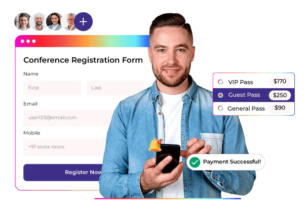 - Branding & Customization: Full control over event design, including colors, layouts, microsites, and logos to match brand identity.