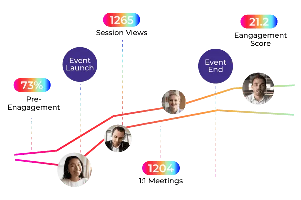- Analytics & Reporting: Real-time tracking of attendee activity, engagement metrics, booth visits, and conversions.