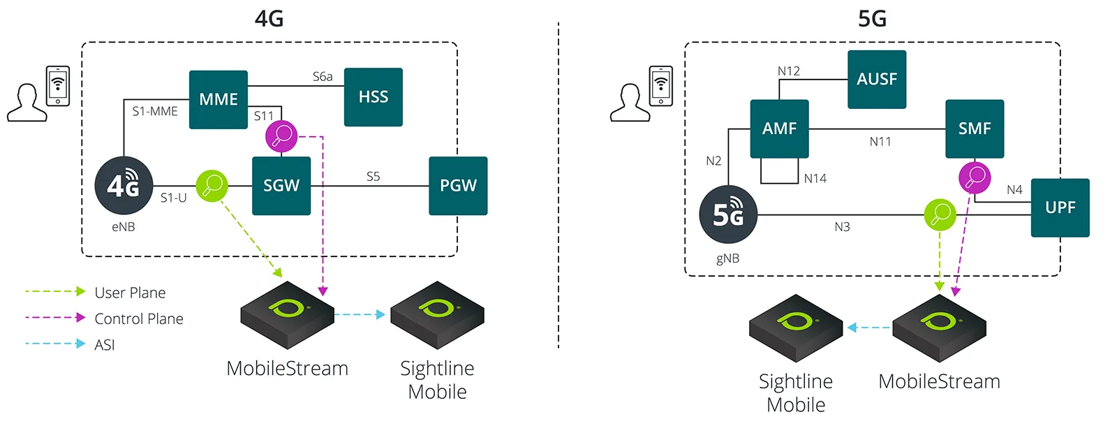 - Control-Plane and User-Plane Visibility: Dynamically maps mobile IP addresses to identities, providing comprehensive traffic visibility.