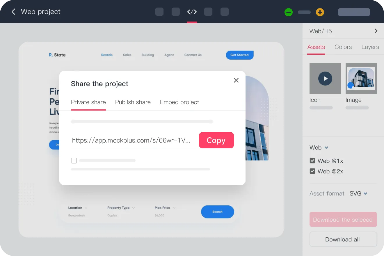 Mockplus Cloud helps you handoff more than specs via a link: