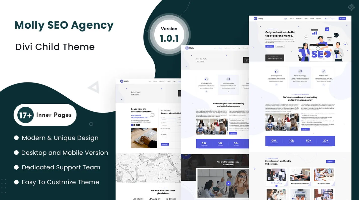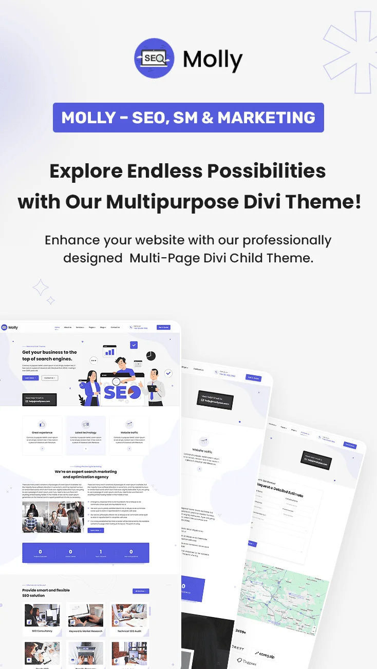 Divi SEO, Social Media, and Marketing is a modern and professional Divi child theme designed for digital agencies, SEO experts, and social media marketers. It features a multi-purpose and multi-page layout, making it easy to build an engaging online presence. Built entirely with Divi modules, this theme allows simple customization without coding. It includes a prebuilt global header and footer, ensuring a consistent and polished look across all pages. With a clean design, mobile-friendly structure, and user-friendly features, this theme helps you showcase your services, case studies, and client success stories effectively.