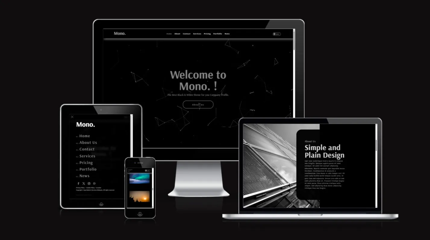 Mono. is a monochrome designed layout that is designed for those who wanted to have a website which looks plain in design and yet rich in information. It is best suited for anyone who need to build a company profile website. With Version 3 comes with better optimizations and a new menu for mobile devices.