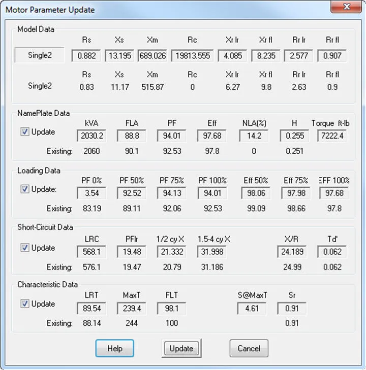 The ETAP Motor Parameter Estimation program calculates equivalent circuit model parameters for motor at starting condition. The calculation is based on advanced mathematical estimation and curve fitting techniques, which require only the machine performance characteristic data. The estimated model, together with its parameters, can be used to represent the motor dynamics during motor starting and transient stability studies. Machine characteristic curves based on the estimated model are automatically updated into the corresponding motor editor. Additional key machine characteristic and nameplate data are automatically calculated based upon the estimated model.