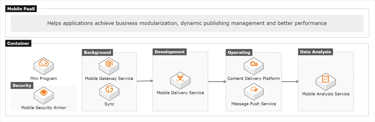 mPaaS helps enterprises quickly build stable and high-quality mobile apps with lowered technical barriers to entry, reduced R&D costs, and improved development efficiency. The mPaaS development framework can automatically generate initialization code and provide the modular development mode for collaborative development.