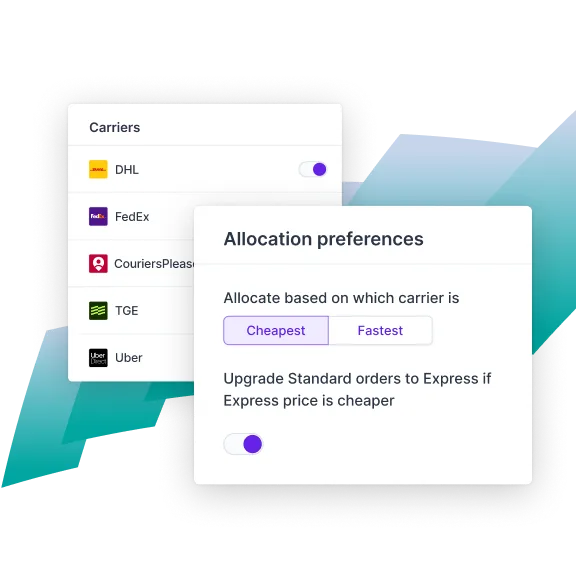 - Optimizing carrier selection based on cost, speed, route, and delivery performance.