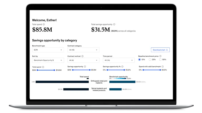 - Analyzes both physician preferred and commodity categories through spend trends, vendor market share, benchmarking, and physician-utilization patterns