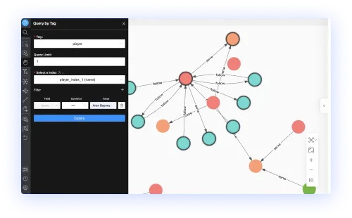 • No-Code Graph Query: Enables users to generate graph queries using a drag-and-drop WYSIWYG interface.