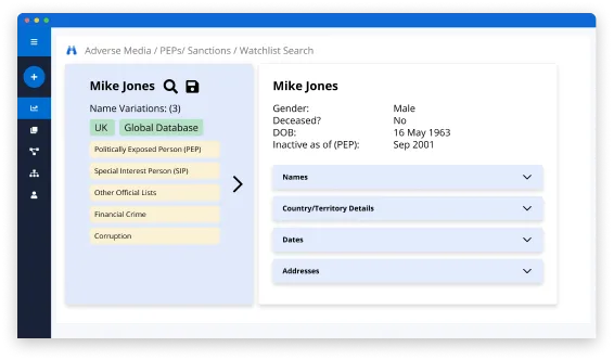 - Leverages AI to "join the dots" across global risk databases, corporate records, adverse media, and Open Source Intelligence (OSINT), including surface web, deep web, and social media.