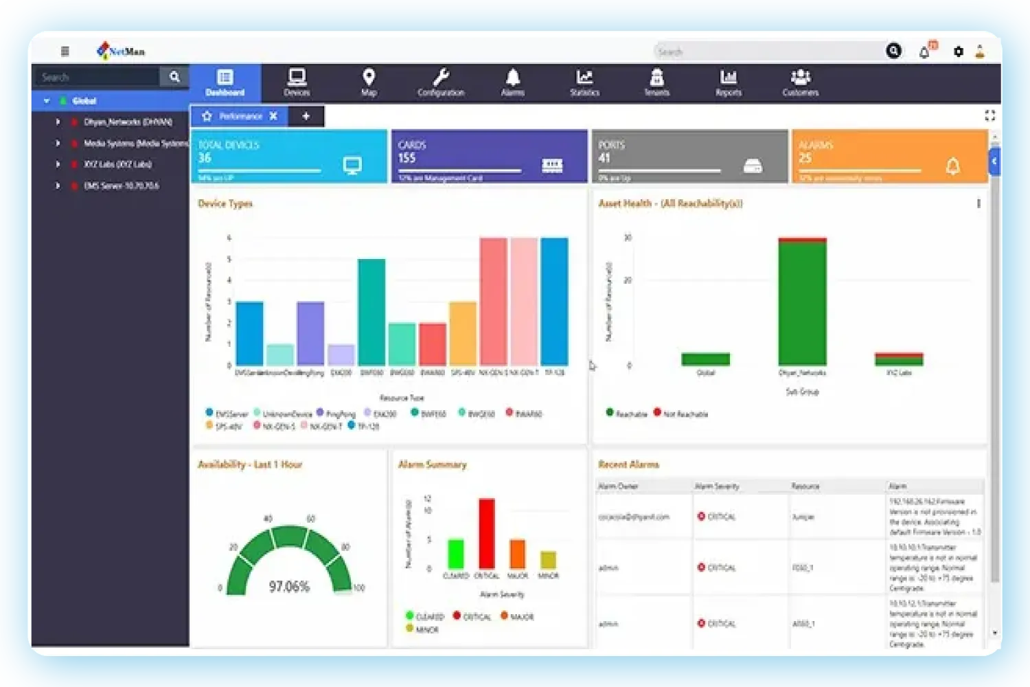 NetMan is an Element Management System (EMS) platform designed to accelerate the creation and deployment of custom EMS solutions for network device manufacturers and system integrators. It provides built-in support for common topology and FCAPS (Fault, Configuration, Accounting, Performance, Security) functions, enabling efficient management of network elements. NetMan supports recent technological advancements, including management of LTE and 5G core and RAN devices, YANG-based devices, streaming telemetry, and cloud-native architectures. The platform offers flexible southbound interfaces (SNMP, NetConf, TL1, CLI, NetFlow, ICMP, TR-069, and vendor-specific protocols) for device communication, and northbound interfaces (SNMP, JMX, REST) for integration with external systems. NetMan is compatible with both Windows and Linux environments and supports major databases such as Postgres, MSSQL, MySQL, and Oracle. Its modular architecture allows OEMs and system integrators to deliver tailored, branded EMS or unified NMS solutions, minimizing development time and risk.
