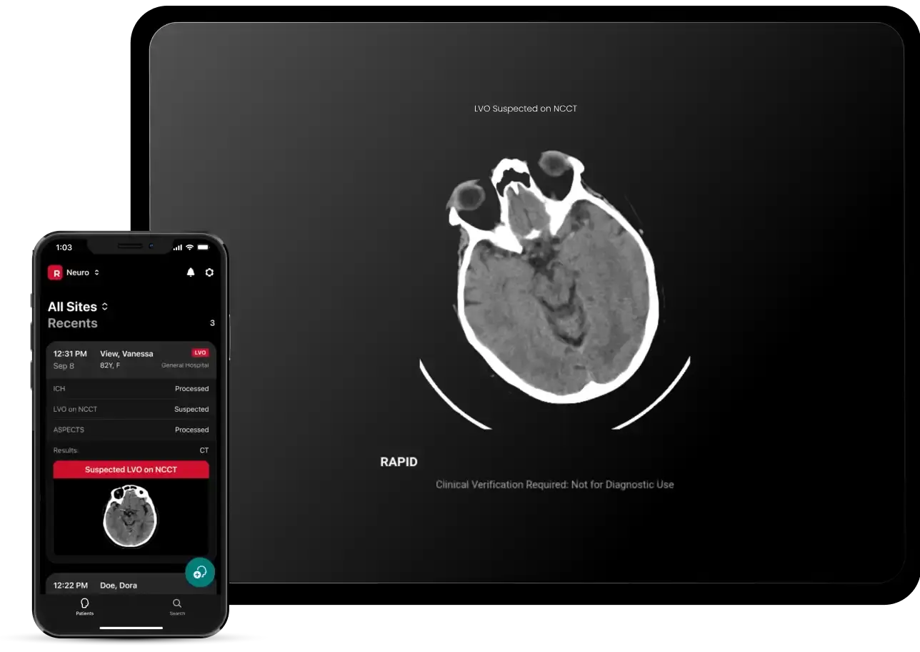 - Rapid ASPECTS: Automated Alberta Stroke Program Early CT Score (ASPECTS) calculation to evaluate ischemic changes and thrombectomy eligibility.
