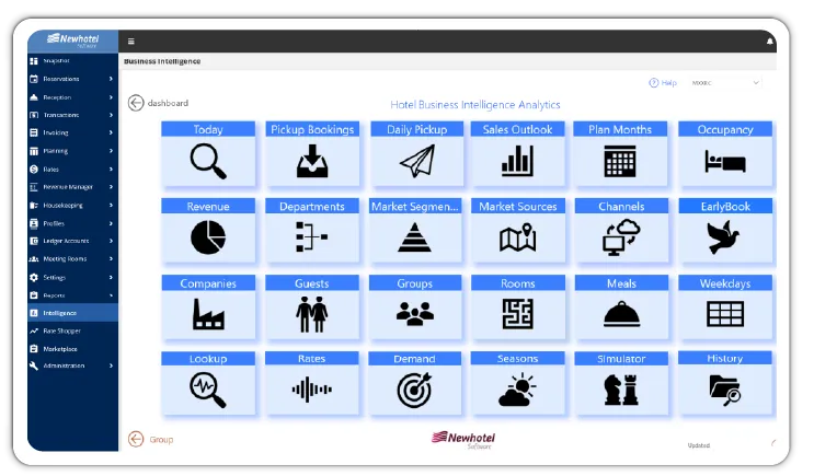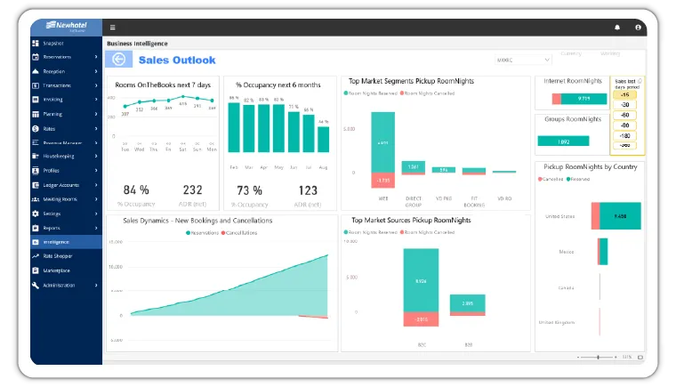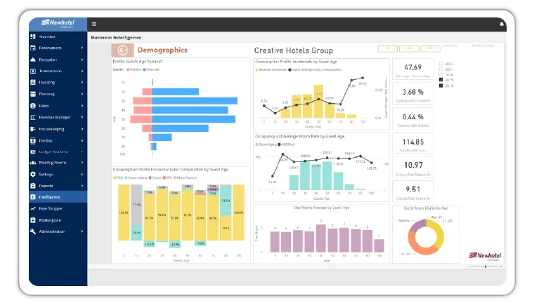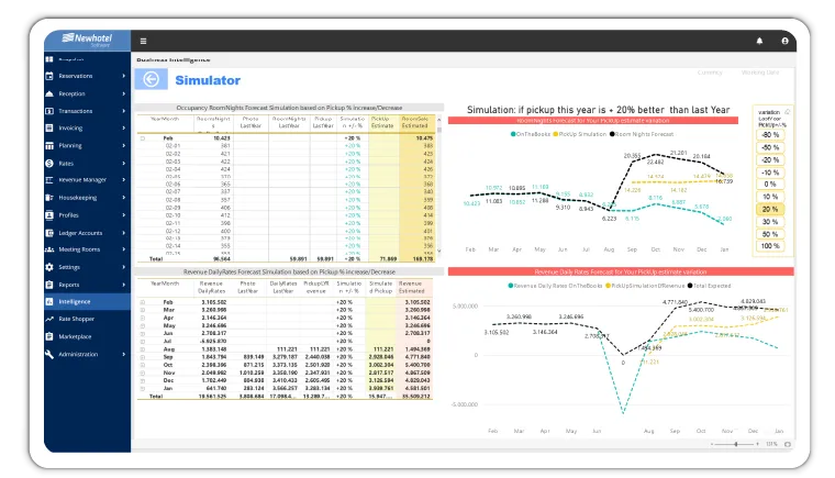 Newhotel Business Intelligence is a powerful data analysis and performance management tool designed specifically for the hospitality industry. Integrated with Newhotel Cloud PMS, it enables hotels, resorts, and hotel groups to make strategic decisions based on accurate analyses, simulate future scenarios, and optimize sales strategies. With over 100 interactive dashboards and pre-configured analytics, it provides deep insights into operational, financial, and customer data—without requiring additional consulting or implementation services.