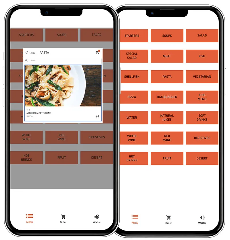 - Order Submission: Orders are sent directly to the waiter or kitchen.