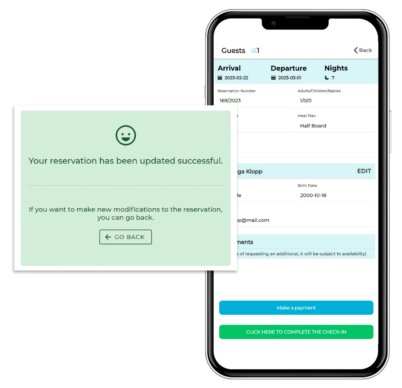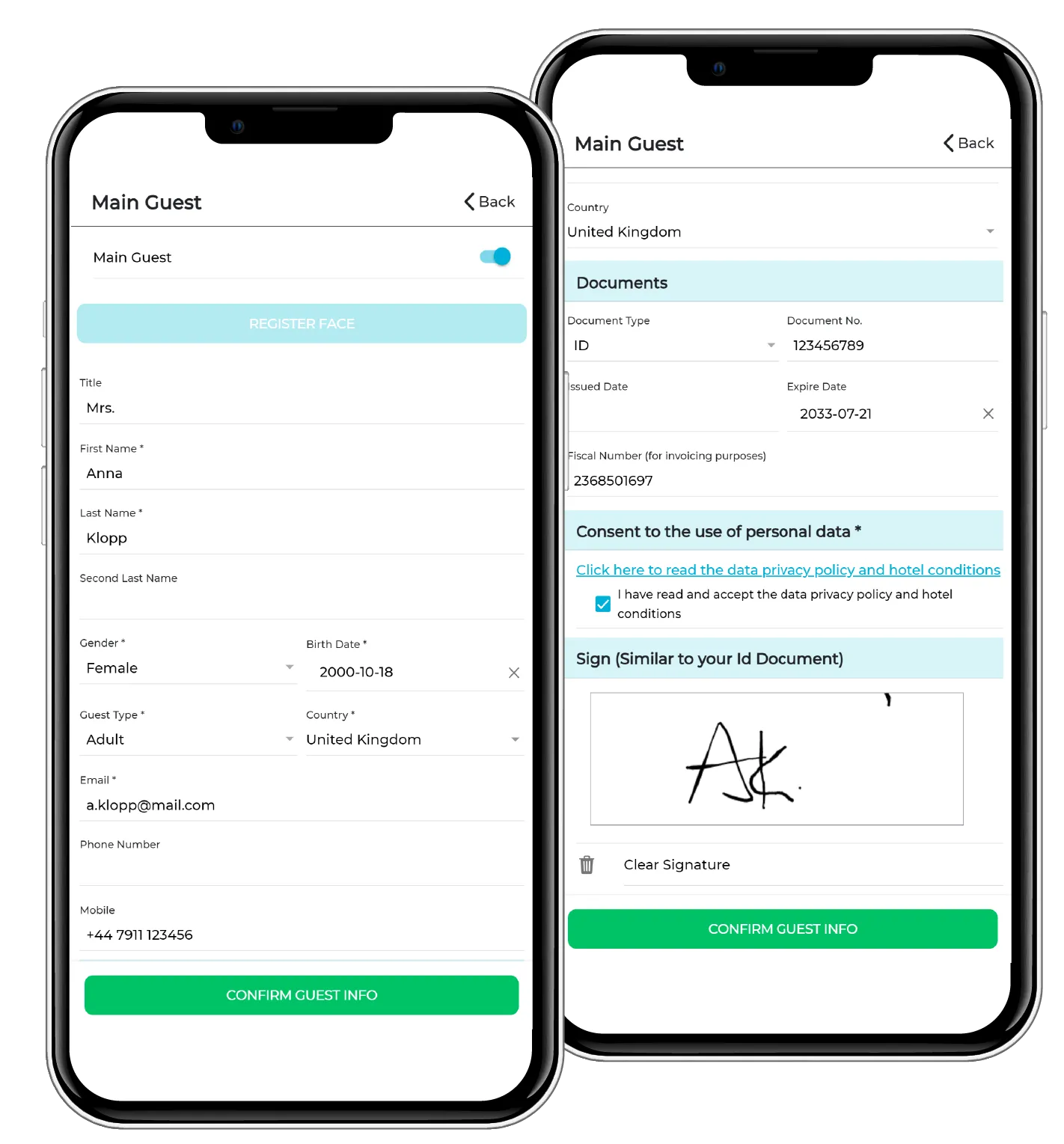- Digital Data Entry: Guests fill in personal and billing information online.