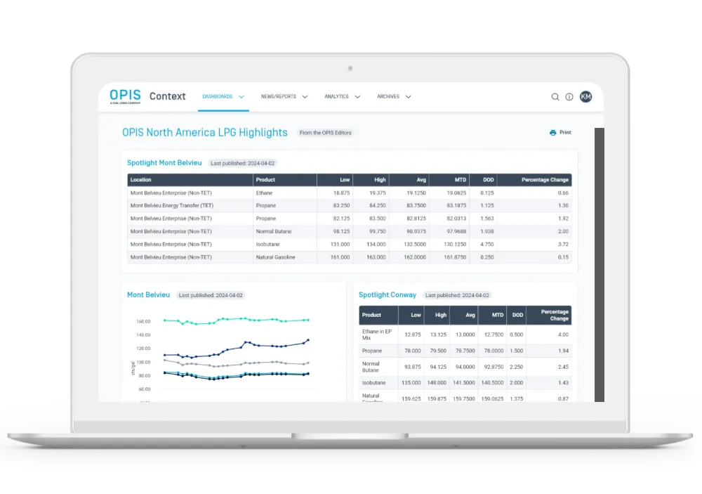 The North America LPG Report provides vital pricing benchmarks for businesses operating in the LPG sector. From Mont Belvieu, Texas, to Conway, Kansas, the report offers comprehensive spot pricing, news, and analysis for NGL markets across North America. As the official spot benchmark, OPIS pricing is tied to almost every gallon of propane, butane, ethane, and natural gasoline in the U.S. market. OPIS covers U.S. natural gas liquids spot markets on a full-day basis, canvassing an unparalleled source pool to provide reliable pricing. The report also introduces the OPIS Carbon Offset NGL/LPG Index, reflecting spot prices for NGLs combined with carbon credits necessary to offset the fuels’ emissions, helping assess and hedge the cost of offsetting the carbon impact of propane, butane, and ethane.