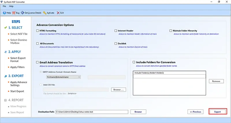 - Convert multiple NSF files saved in a common folder without limitation on the number of files.