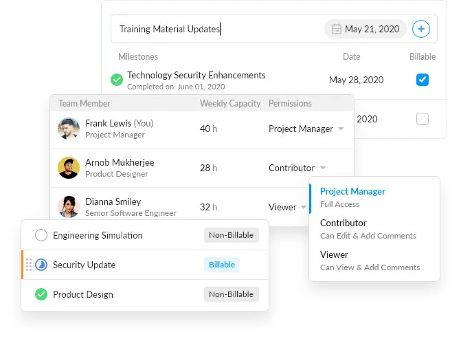 - Time Tracking & Timesheets: Use automated timers or manual entries to log work hours and submit for approval.