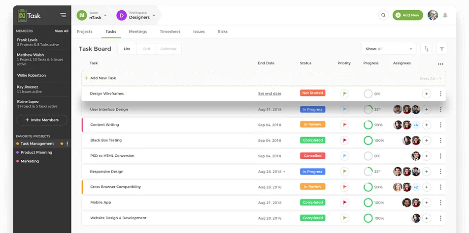 nTask is a cloud-based project management platform that helps teams plan, collaborate, and execute tasks efficiently. It combines task tracking, time management, and team communication in one tool, making it ideal for businesses seeking streamlined workflows and improved productivity.
