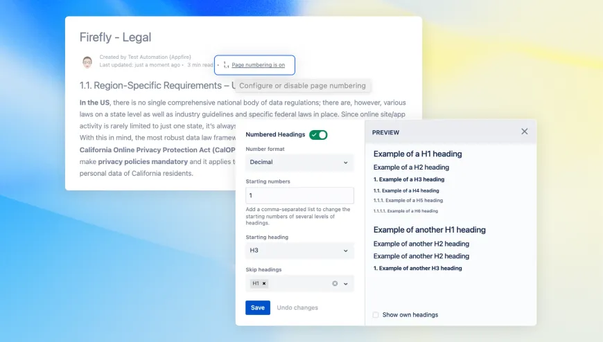 Automatically number headings in Confluence, saving time and effort