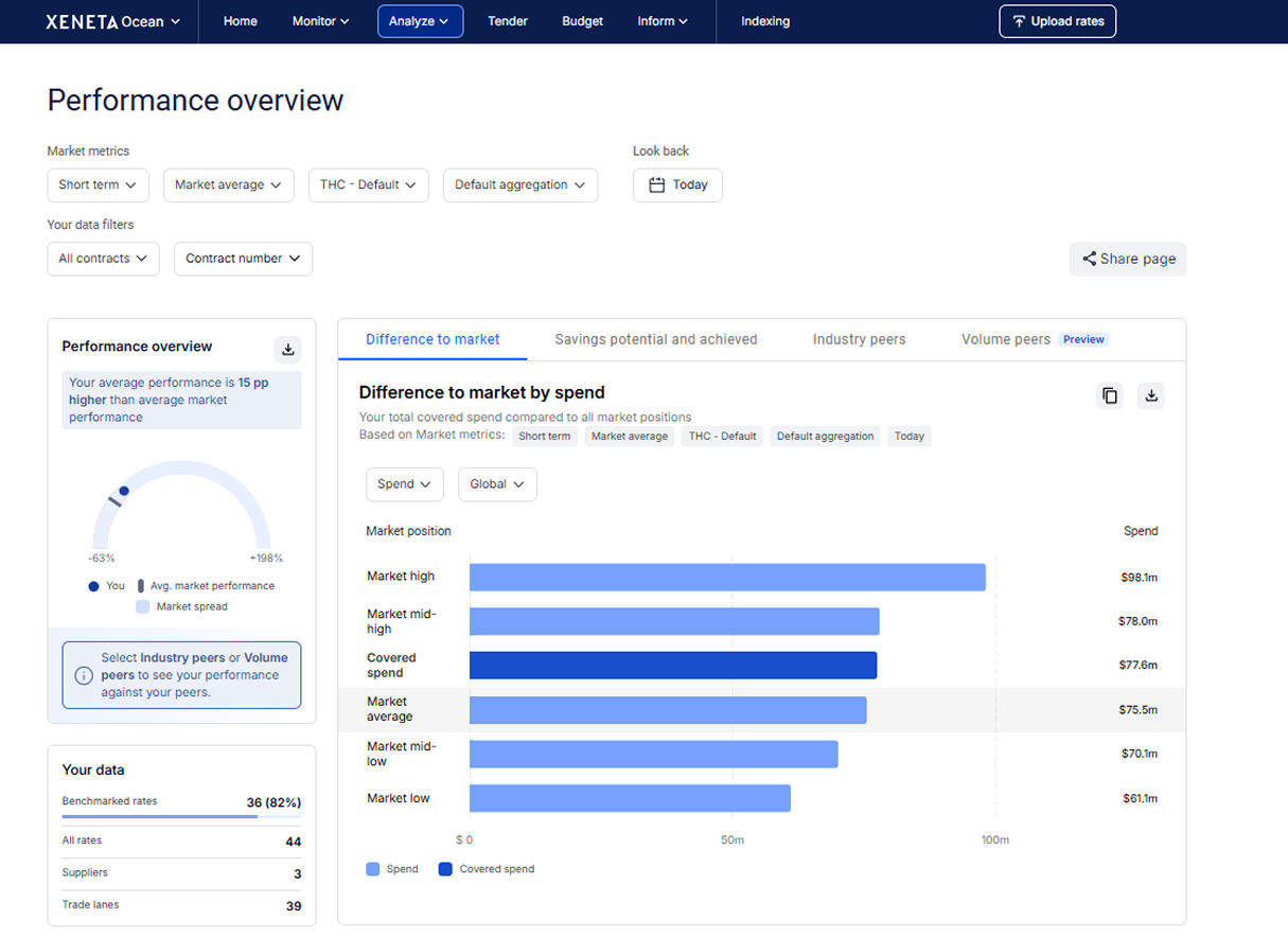 - Ocean Intelligence: Monitors market rate developments and benchmarks uploaded rates against market data.