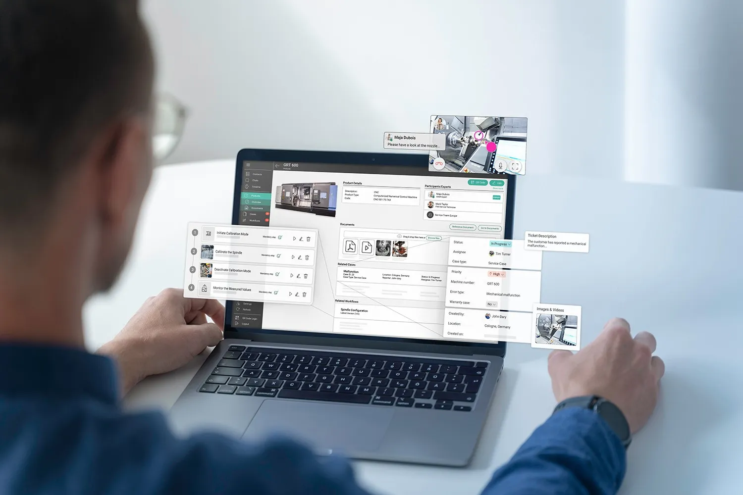 - Visual Assistance: Provide visual support for technical field service, including ticket management, digital work instructions, and access to machine documentation.