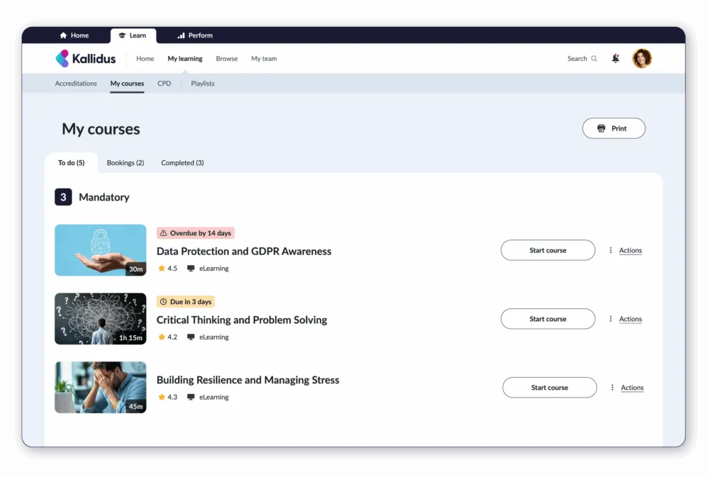 Kallidus Off-the-Shelf Courses provide a large, professionally produced library of ready-made eLearning modules designed to simplify compliance, upskill employees, and deliver measurable learning outcomes. The library contains hundreds of scenario-based, AA-accessible, and mobile-ready courses across compliance, health & safety, leadership, soft skills, and business topics. Courses are brandable, regularly refreshed, and can be deployed quickly into an existing LMS.